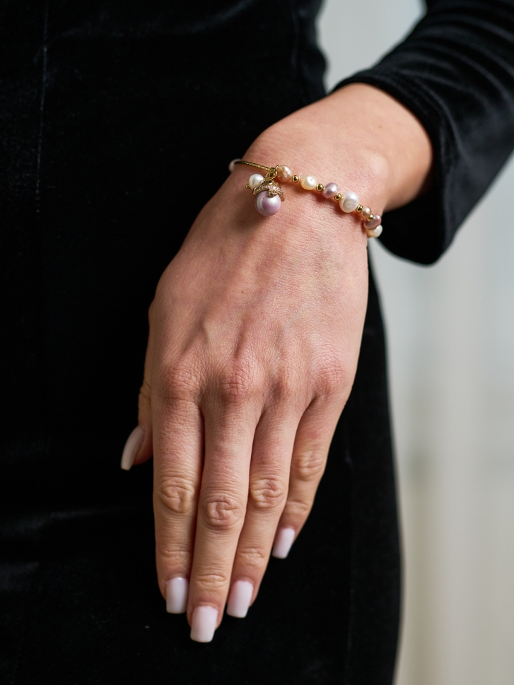 Brățara Lucky Pearl Charm este o brățară cu perle de apă dulce multicolore, creată pentru femeile care adoră bijuteriile elegante cu detalii unice și accente aurii. Perlele de apă dulce în nuanțe naturale de alb, roz și champagne oferă un aspect sofisticat, transformând această brățară cu perle într-un accesoriu modern și rafinat, perfect pentru purtare zilnică sau pentru ținute speciale.