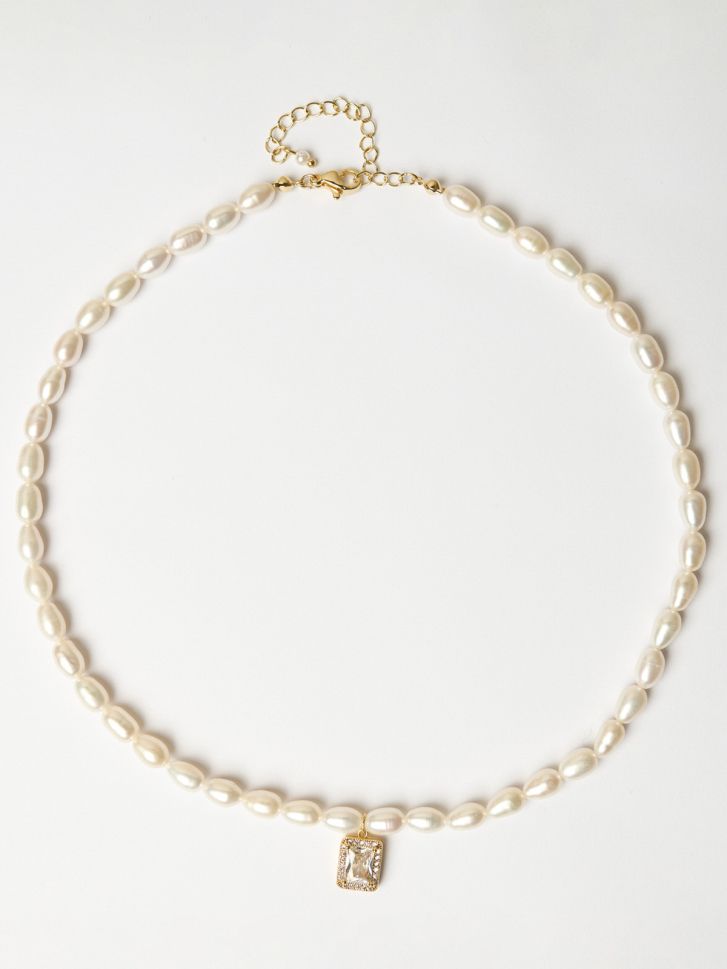 Colier cu perle și zirconiu baguette
