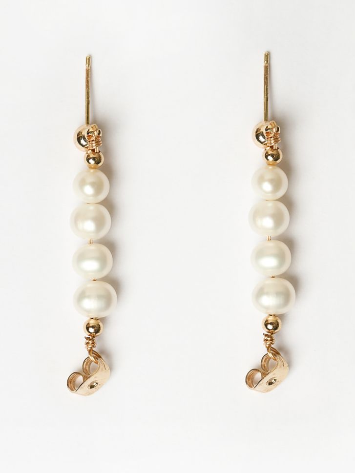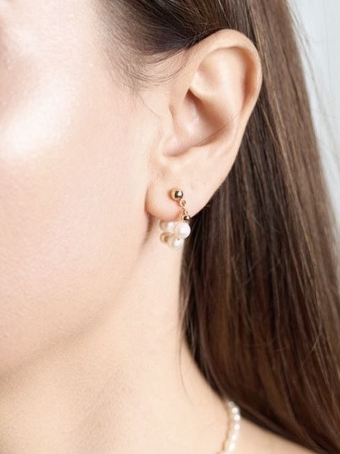 Acești cercei sunt creați pentru femeile care iubesc bijuteriile fine, discrete și elegante. Fiecare cercel este realizat dintr-un grup delicat de perle, suspendate de un suport auriu minimalist, care se așază perfect pe lobul urechii.