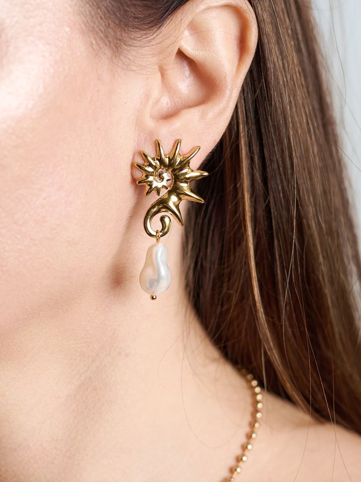 Cerceii Seahorse sunt creați pentru femeile care iubesc accesoriile statement, combinând un design modern sculptural cu frumusețea organică a perlelor baroc de apă dulce. Forma neregulată a perlelor se îmbină perfect cu detaliile aurii lucioase, rezultând un efect artistic specific bijuteriilor premium cu perle.