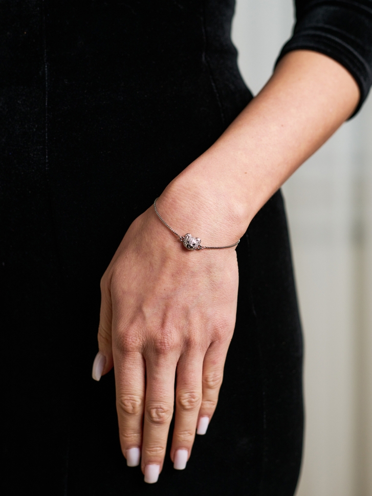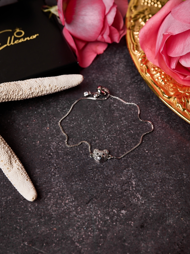 Lanțul subțire din oțel rezistent menține un design fin și minimalist, iar închiderea glisantă permite ajustarea perfectă pe orice încheietură. Brățara cu urs se încadrează în categoria brățărilor argintii fashion și este ideală pentru femeile care caută o brățară cu cristale, ușoară, rezistentă și modernă.