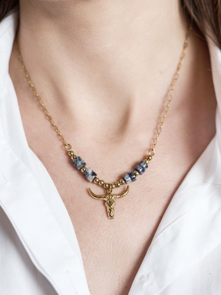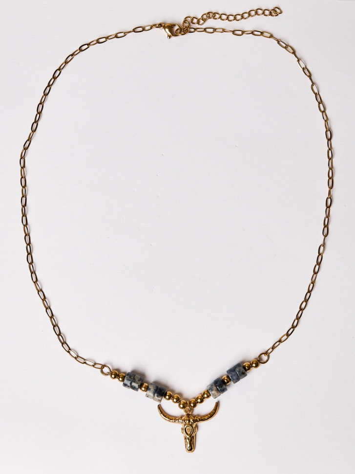 Colier placat cu aur 18K - Berbec cu cristale sodalit